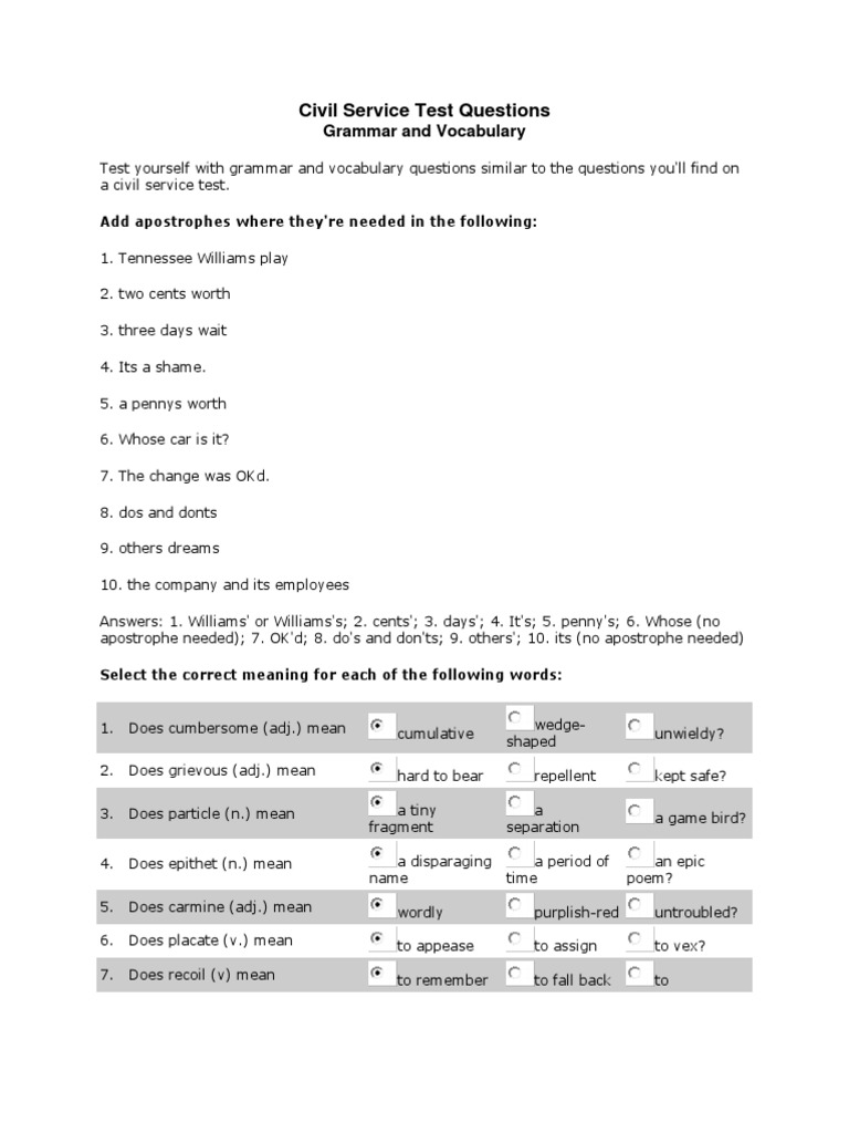 Browse and Read Civil Service Test Questions And Answers Civil Service Test Questions And Answers One day, you will discover a new adventure and knowledge by spending more money. ... Doc Viewer